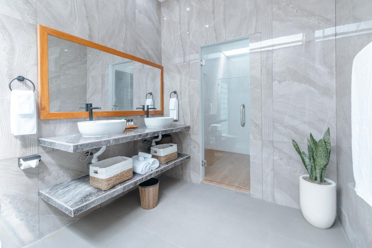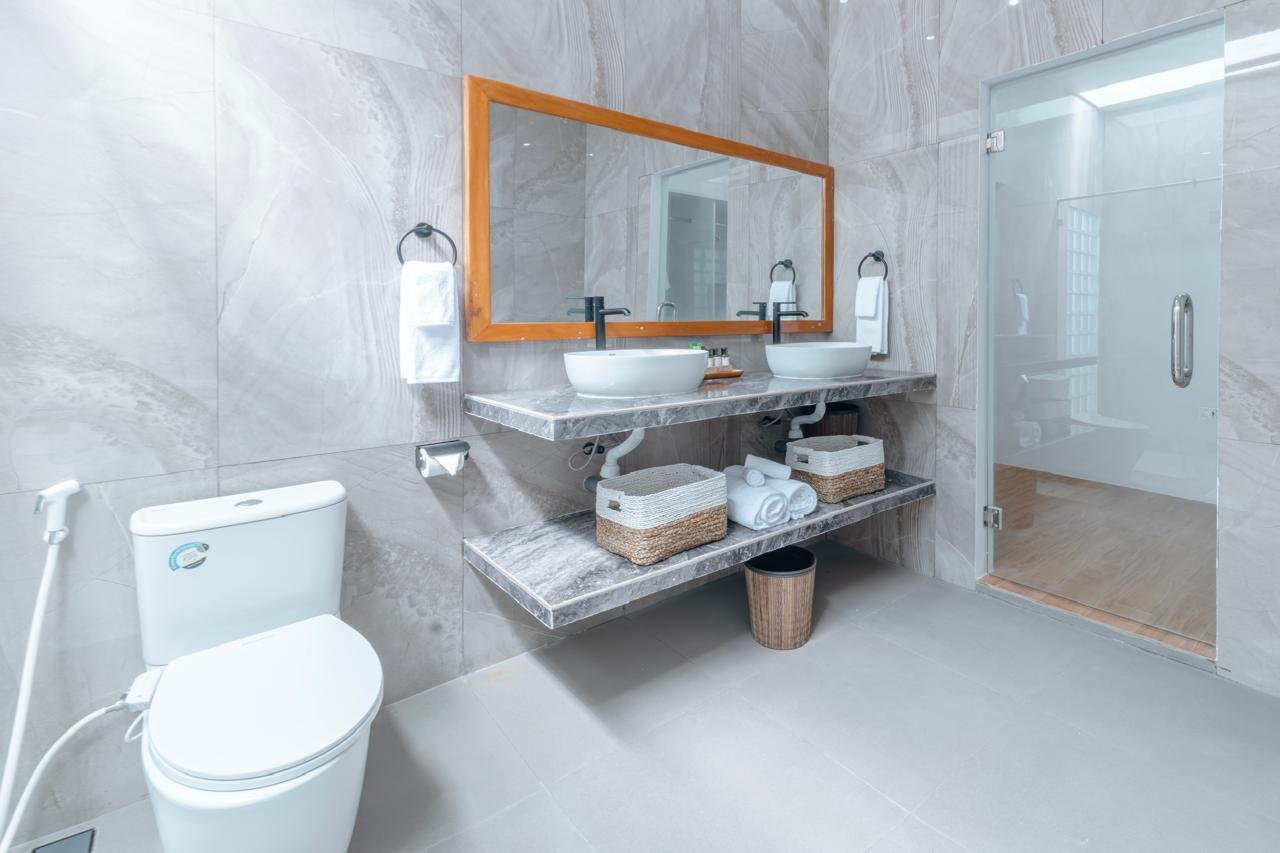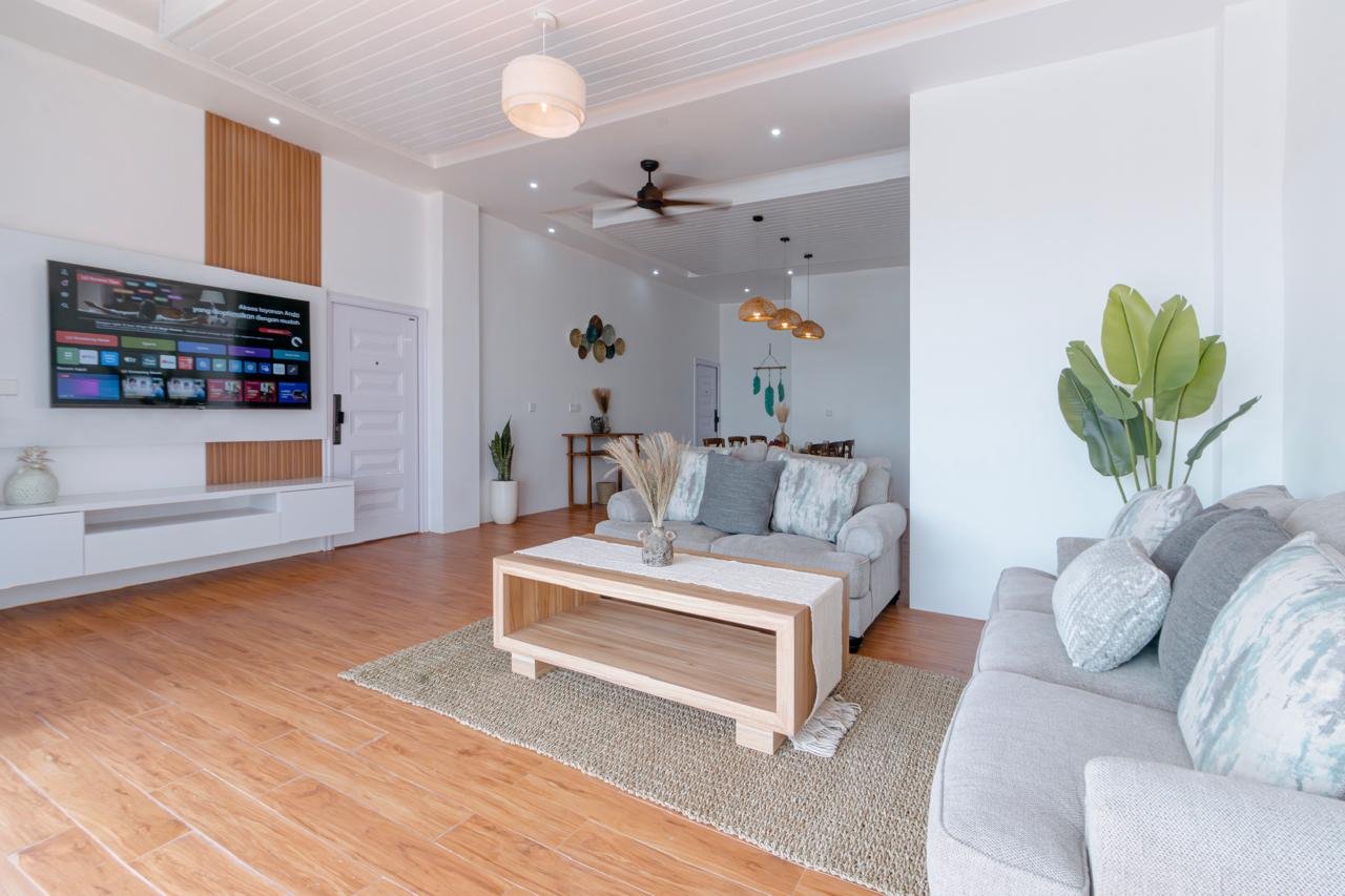 The villa features ๐๏ธ 1 King Bed, ๐ 1 Double Bed, and ๐๏ธ๐๏ธ 2 Single Beds, offering spacious accommodation for up to 6 guests. Each room blends modern tropical design with natural island charm โ perfect for creating unforgettable moments.